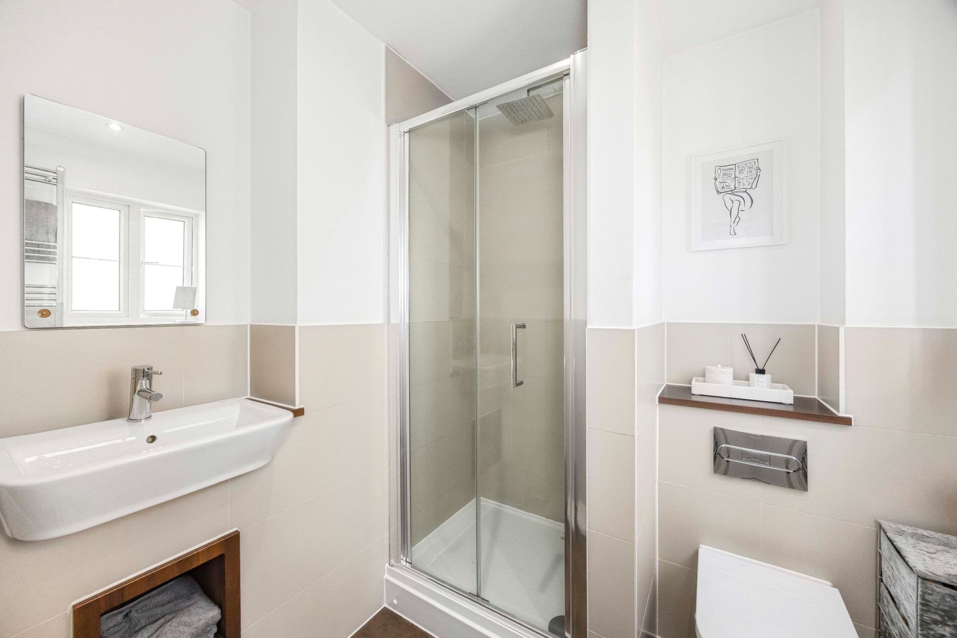 The property features two generous double bedrooms, including a master suite with a contemporary en-suite shower room, as well as a well-appointed family bathroom.